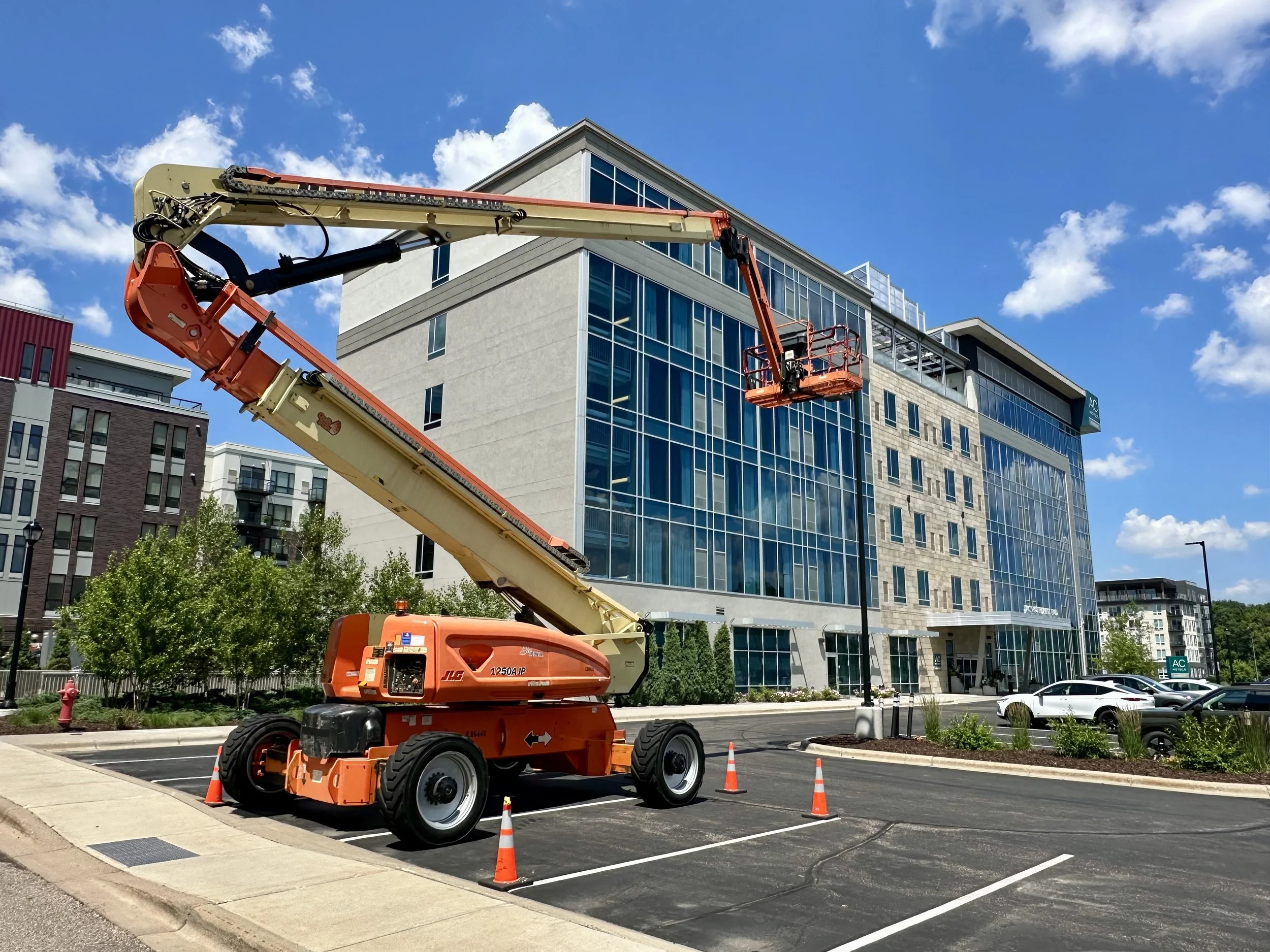 Boom lifts (JLG, SkyTrak, Genie), Telehandlers (JLG), Bobcat (John Deere, Stihl), Tractors, Trucks, Storage containers, Trailers, Pressure Washers, Hammers and more!
